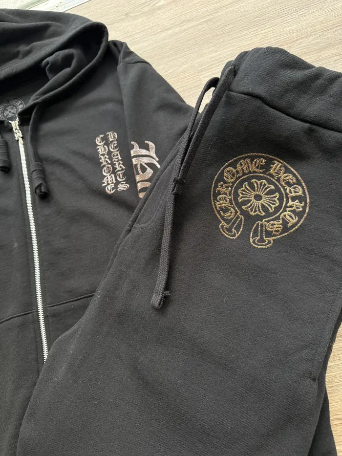 The Chrome Hearts Tracksuit blends luxury streetwear aesthetics with unmatched comfort, making it a statement piece for both casual and elevated looks. Crafted from premium cotton-blend fabric with a smooth, breathable finish, this tracksuit delivers lasting durability without compromising on style. The jacket features Chrome Hearts’ iconic gothic lettering and cross motifs, while the matching pants are designed with a tapered fit for a modern silhouette. Its high-quality construction ensures it remains a wardrobe staple for years, perfect for everything from laid-back weekends to standout streetwear fits.