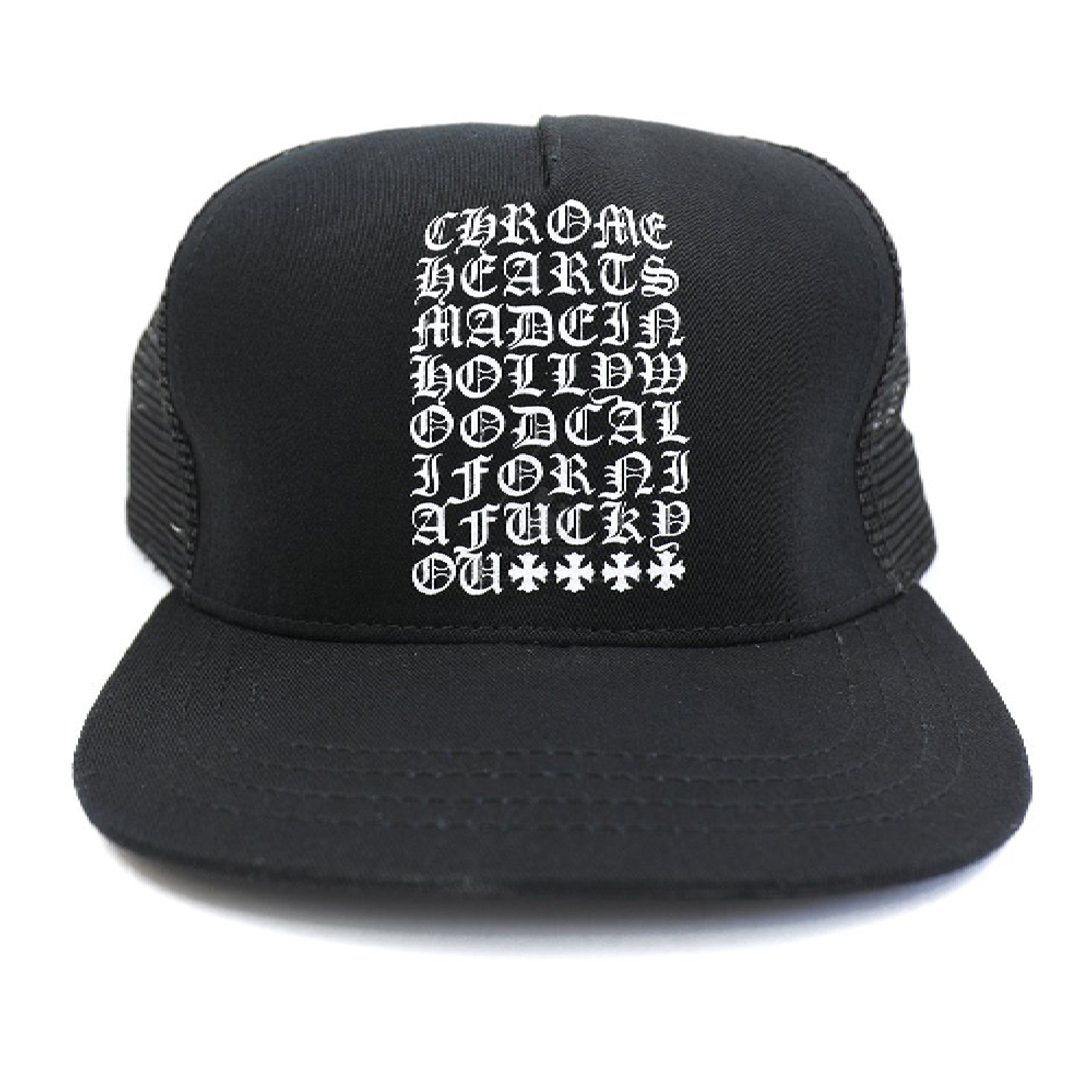 Chrome Hearts Eye Chart Made in Hollywood Trucker Hat – Black