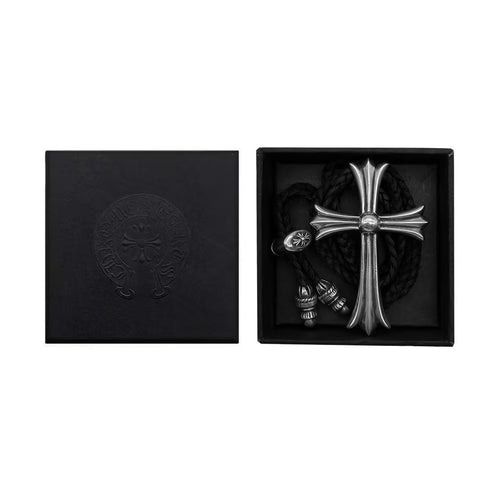 Chrome Hearts Leather Braids 925 Silver Cross Necklace